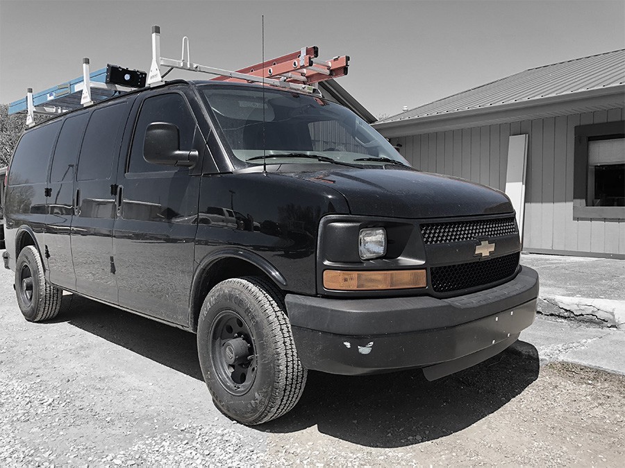 MIB Services, an HVAC contractor, wanted a vehicle wrap for their single-van fleet. They wanted something that would pop off the black van and was noticable at every angle.