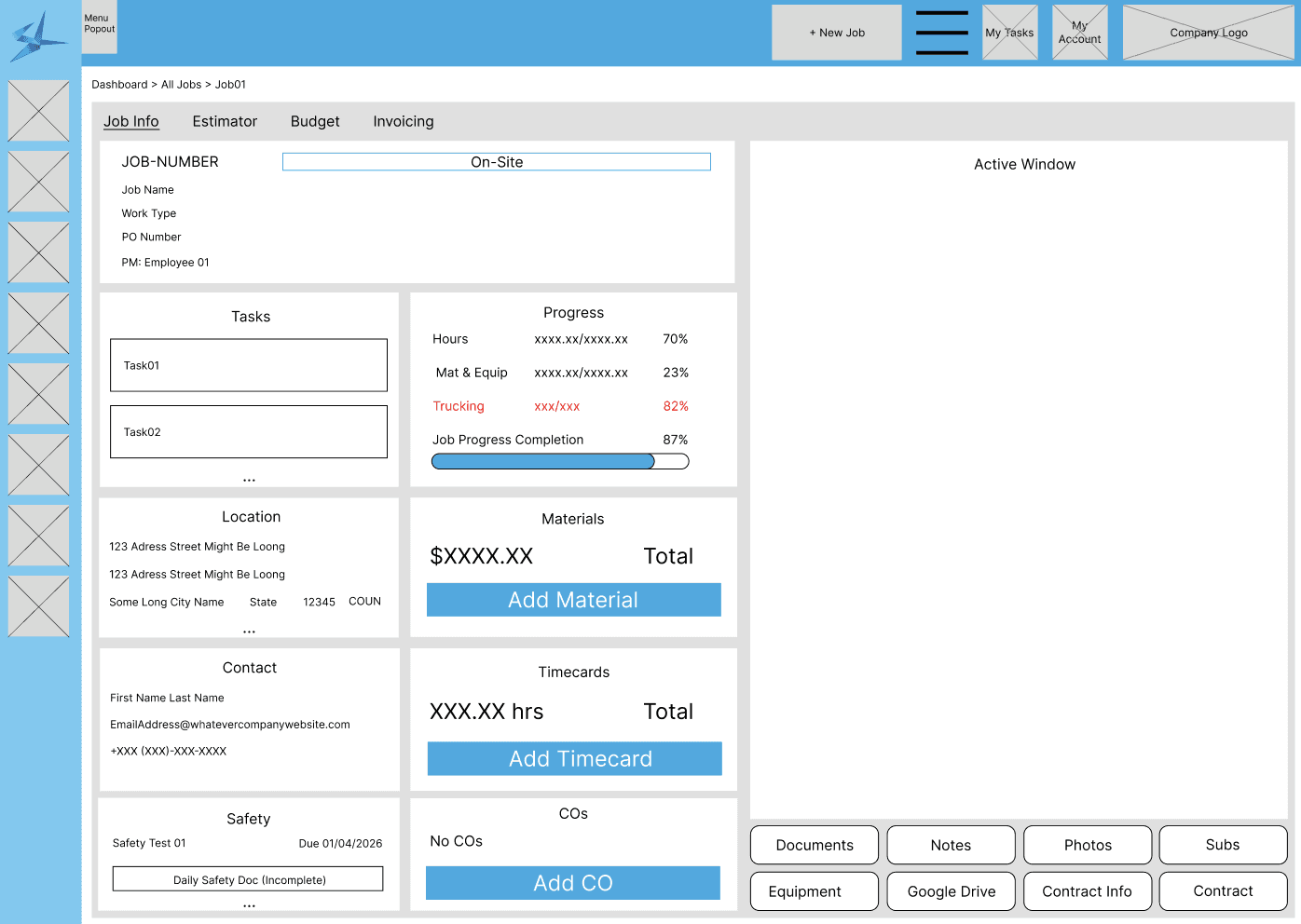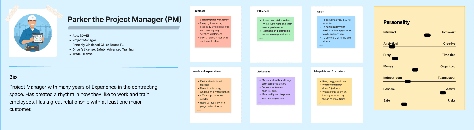 With Parker the Project Manager and Aiden the Office Admin in mind, I had to design a functional and robust system to track jobs, which are the lifeblood of a contracting company.