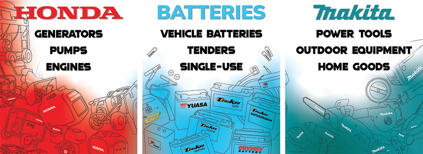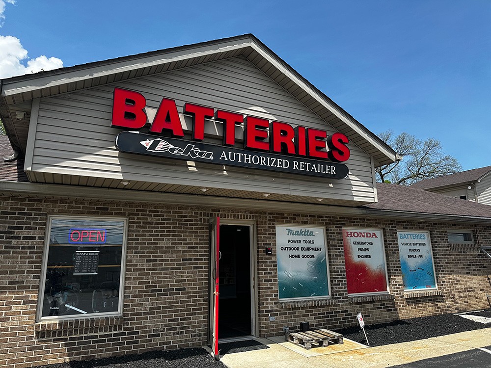 This battery store's aesthetic is both adventurous and functional, with products ranging from solar panel kits to power tools to batteries. For the external window decals the goal was to showcase important products from known brands, as the brands are a main draw for customers.